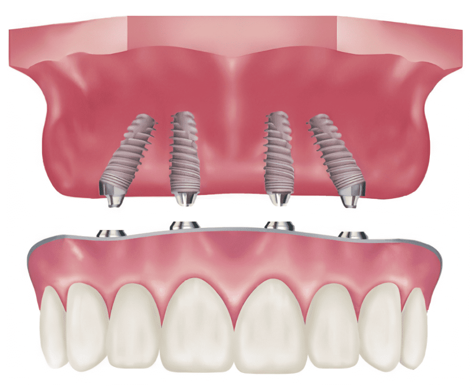 Es el tratamiento más comodo para reemplazar todos tus dientes ausentes de forma fija, sin tener que tener molestias en tus encias por dentaduras que se mueven cuando masticas.